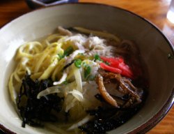 ![]() 蔵元見学の後 山田さんと一緒に「ひさ倉」へ 奄美の代表的な郷土料理鶏飯(けいはん)を食べるなら「ひさ倉」 山田酒造から車で5分ぐらい 空港から名瀬市内へ向かう途中の国道沿いにあります。 奄美の郷土料理で、地鶏を煮出したスープをかけて食べる サッパリ味の雑炊です。 関西には無い美味しい料理でした。 食べている間もひっきりなしに来客があり、 待ち時間ありっていう感じでした。 |