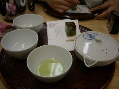 写真が、それで頂いたお茶とお菓子です。