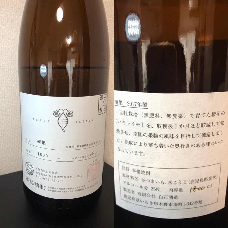 ![]() 久々に白石さんとこの焼酎「天狗櫻 南果」を開栓。 試験的に造られたとか。地元産ハヤトイモを1ヶ月ほど貯蔵、完熟させてから使用していること。 2016年製(黄麹)と2017年製(黒麹)のブレンドげなです。 炭酸割りとロックで飲んでみましたが、白石さん独特の味は薄くソフトなイメージ。 美味しいのは美味しいです。でも芋はやっぱり黄金千貫かなぁ… |