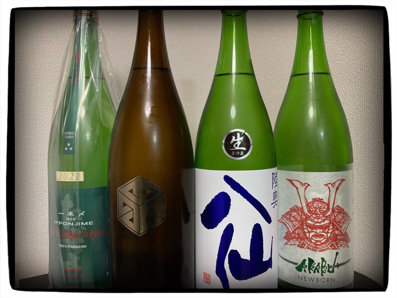 買う日本酒の銘柄が花の香、楯野川、東洋美人に偏りがちなので、楯野川以外あまり買わないお酒4本をうらのさんに送って頂きました。