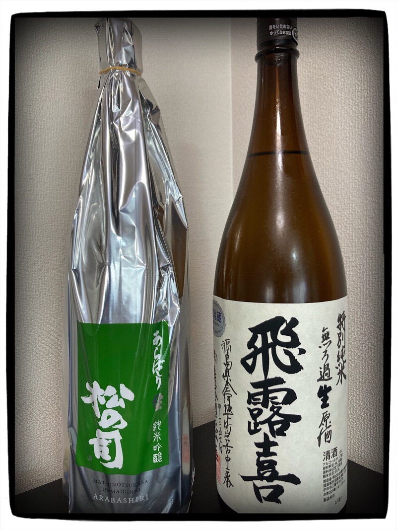 ![]() メルマガが来たのでダメ元で申し込んだらまさかの当選で、代引きで送って来ました。 飛露喜は久々の購入です。 相方の松の司あらばしりをもう開栓したのですが、これバリウマです。 この二本は素晴らしいんじゃないかな!飛露喜はまだ開けてないけどw |